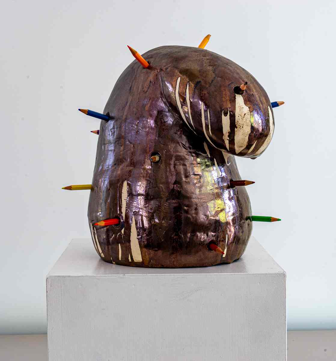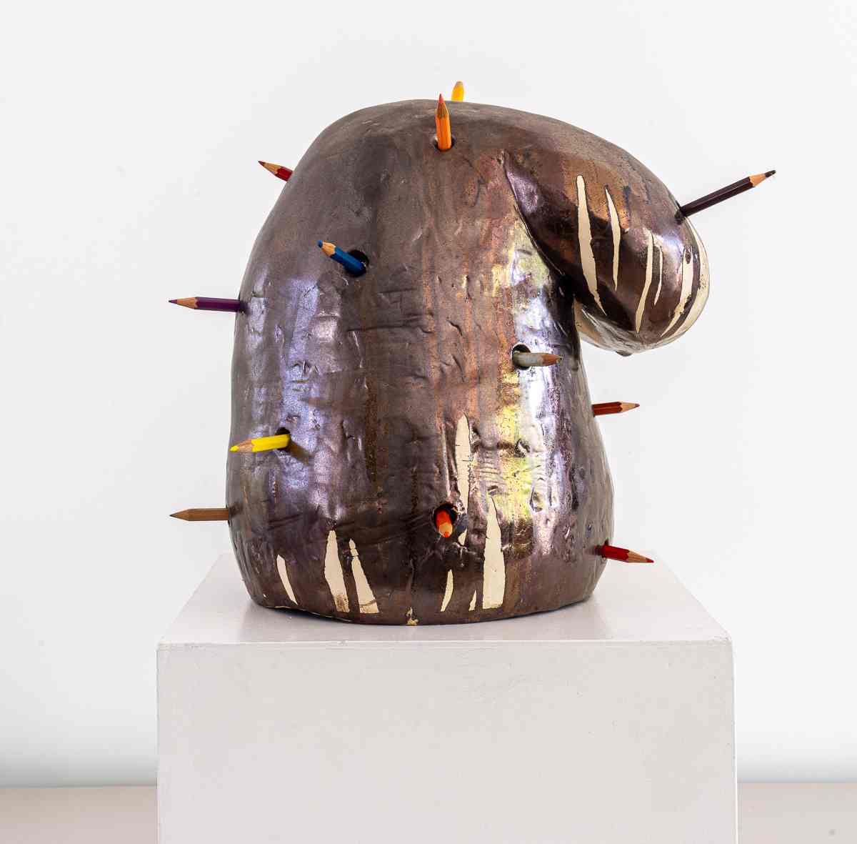 17 x 24 x 37 cm keramiek met bronsglazuur en potloden '25 ( one side)